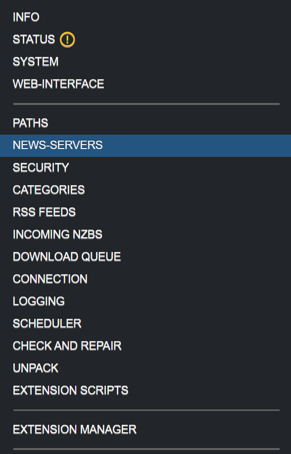 Servers can be configured in Settings → NEWS-SERVERS within the NZBGet web interface.